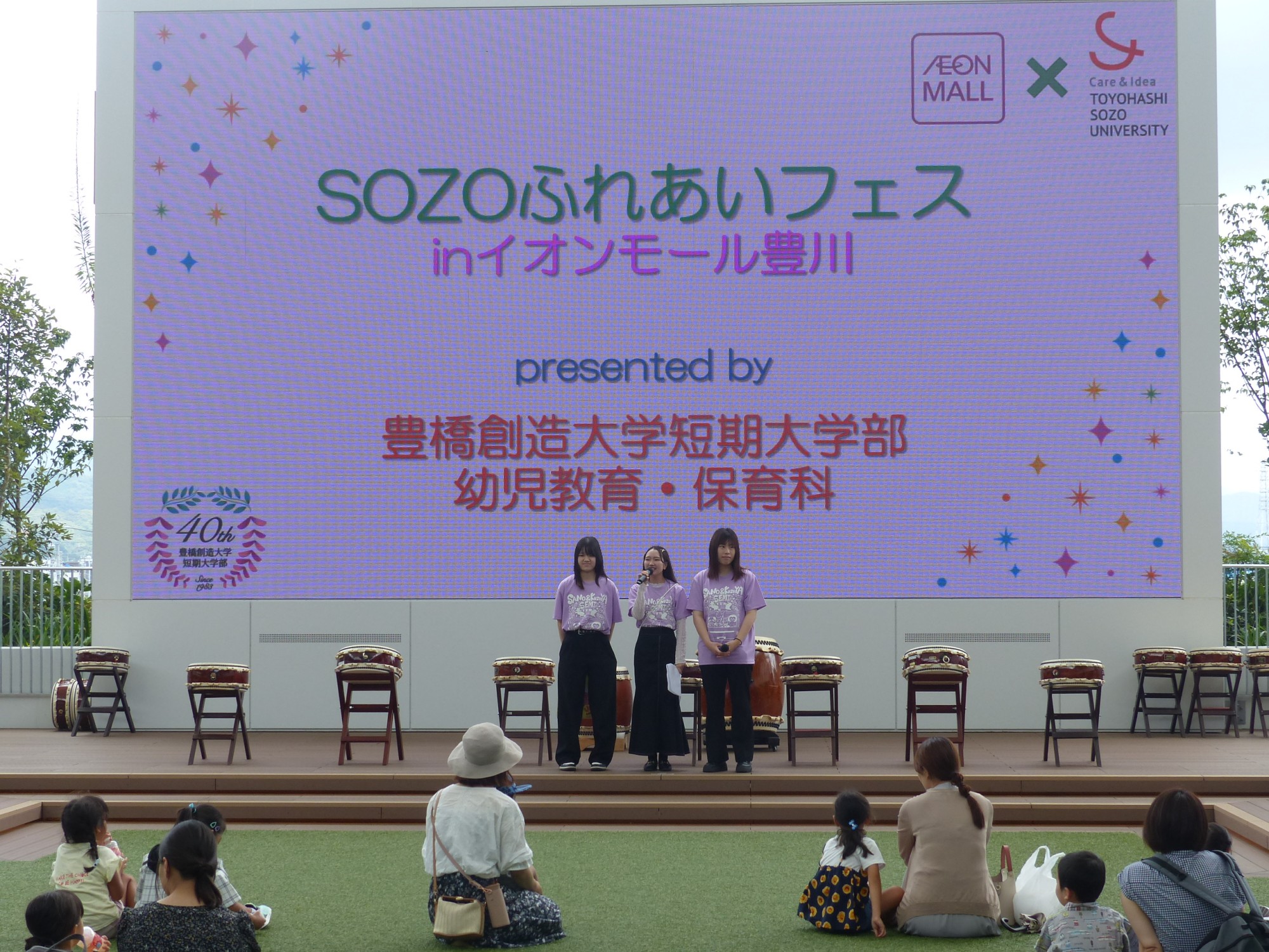 イオンモール豊川との連携協定に基づく初イベント。幼児教育・保育科の学生たちが和太鼓演奏!