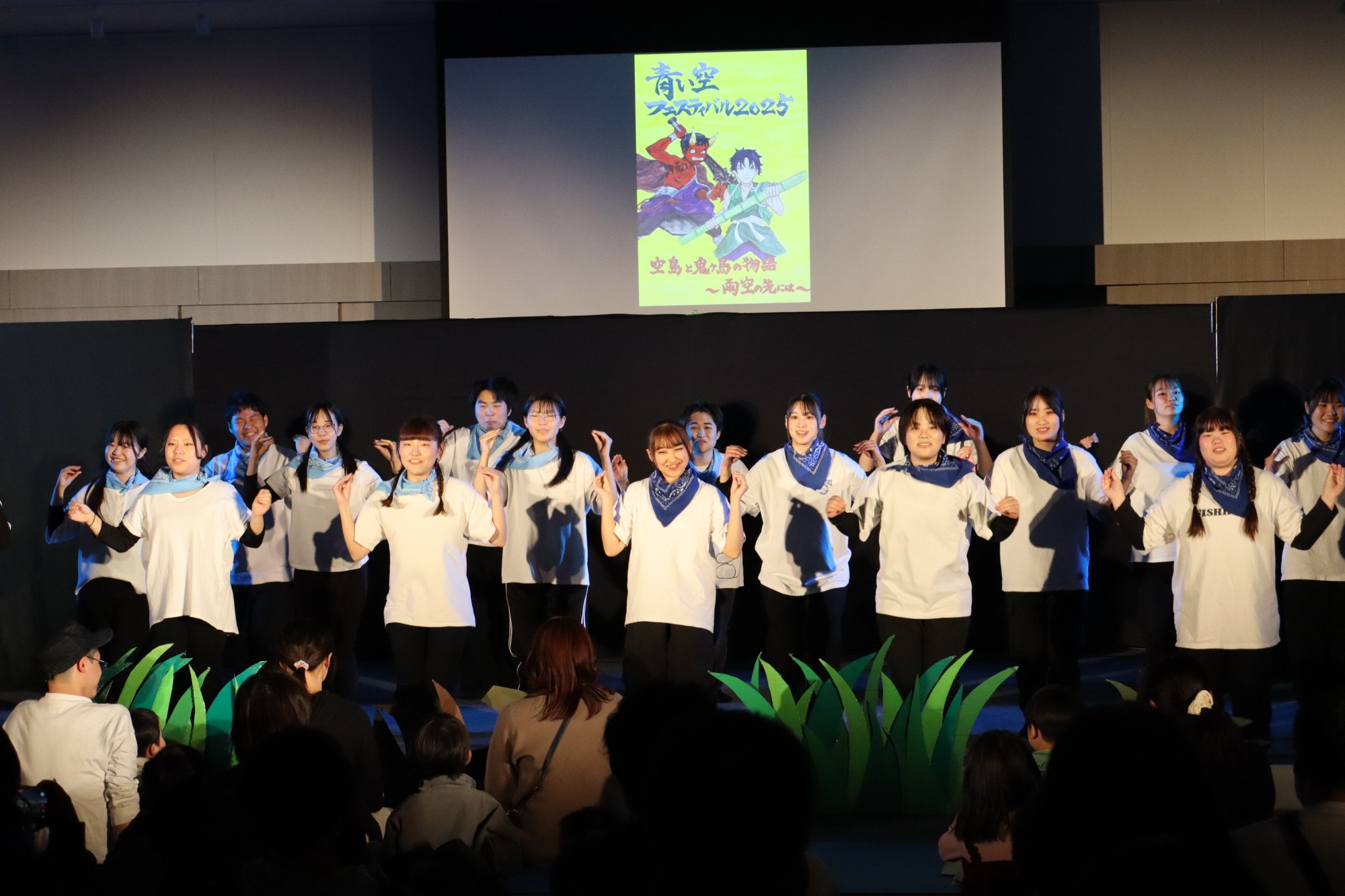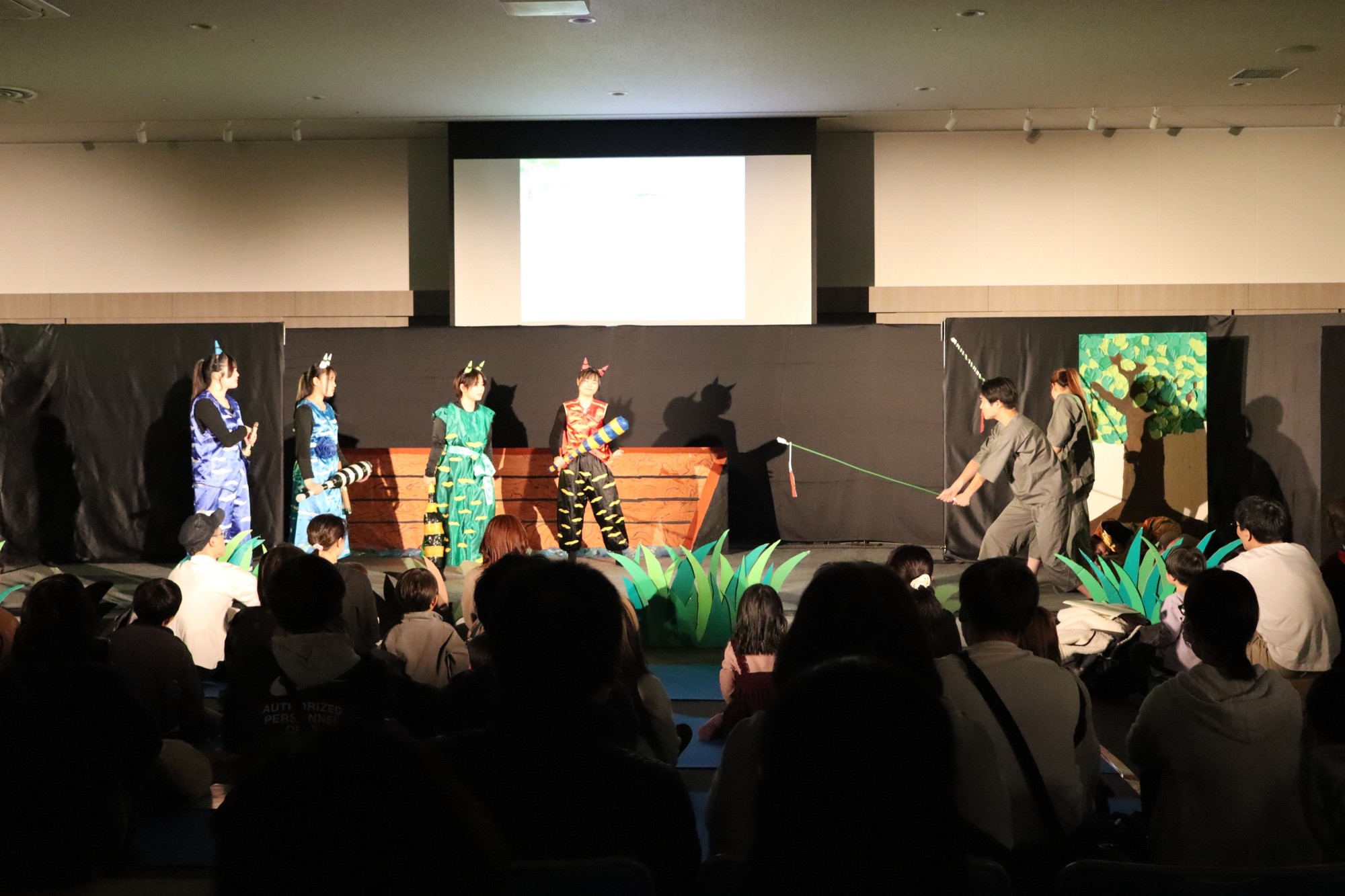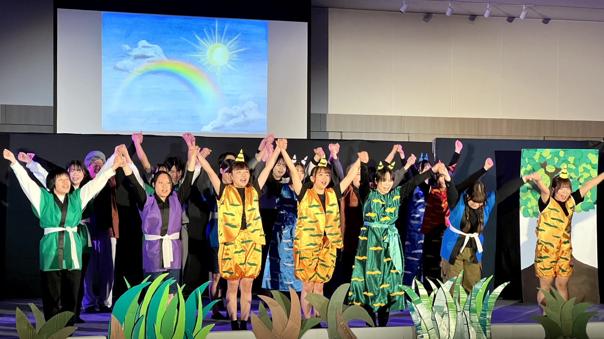 メイン企画の幼児教育・保育科の学生たちによる創作子供ミュージカル「空島と鬼ヶ島の物語~雨空の先には~」は、今年の5月から準備したもので、脚本や音楽、衣装や小道具まで、すべてを学生たちで制作したものを披露させていただきました。