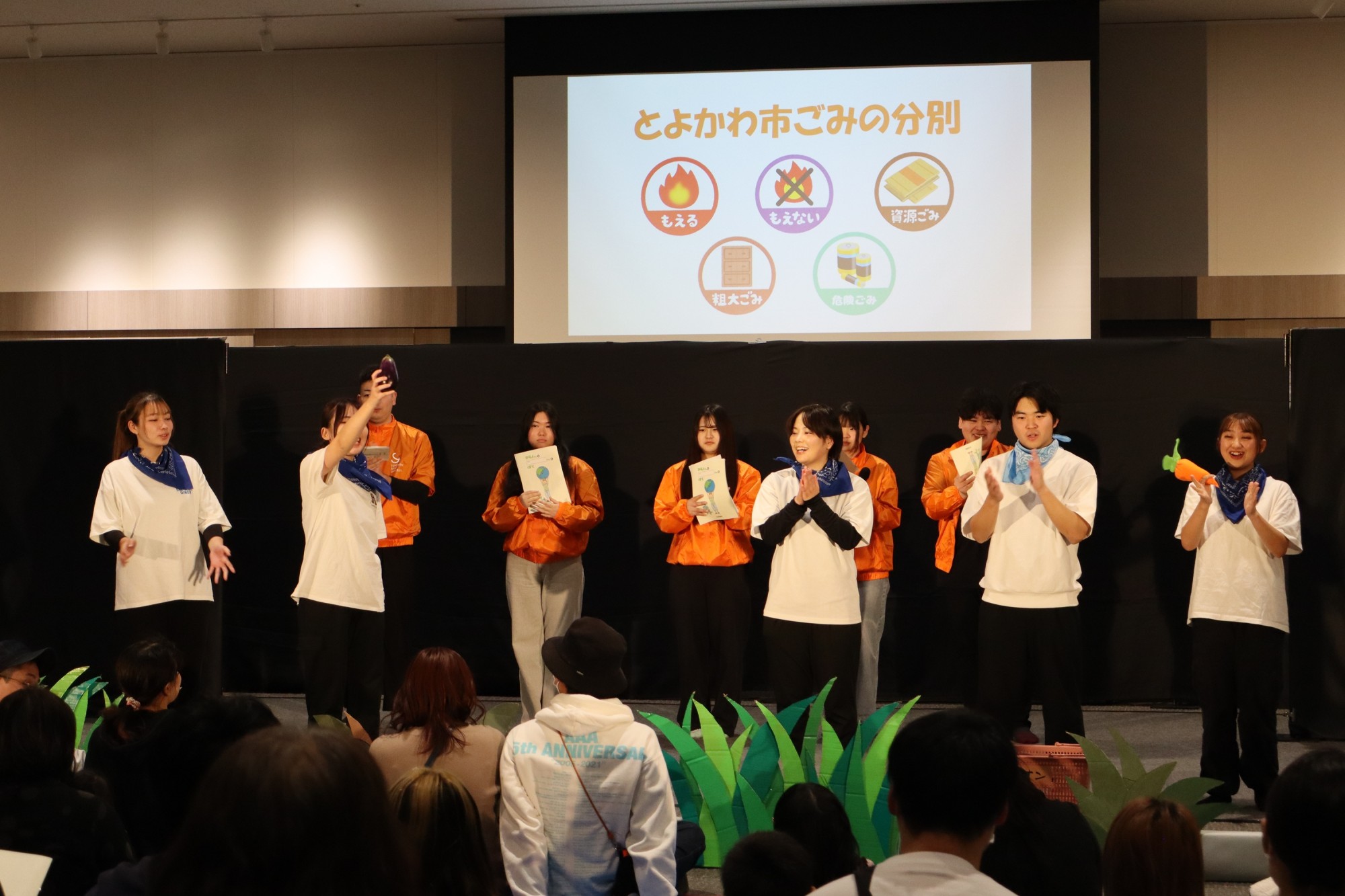 「青い空フェスティバル」のメイン企画、創作子供ミュージカルは、本学の開学以来継続して開催してきたイベントの流れを受け継いで実施しているイベントです。このイベントを、一人でも多くの地域の方々に観覧していただけるようにと、昨年に続き今年もイオンモール豊川のイオンホールで開催。会場にはたくさんの親子連れの方々にご来場いただき、楽しいひとときを楽しんでいただきました。