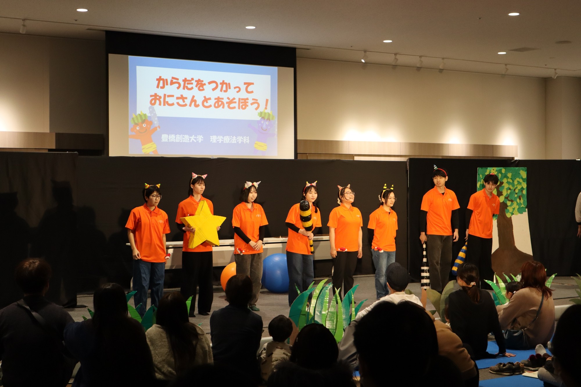 プログラムは、経営学科の学生たちによる「SDGs体験型イベント」や理学療法学科の学生たちによる「子供の成長を促す運動遊び」で、来場した子供たちに参加してもらい、一緒に楽しんでいただきました。