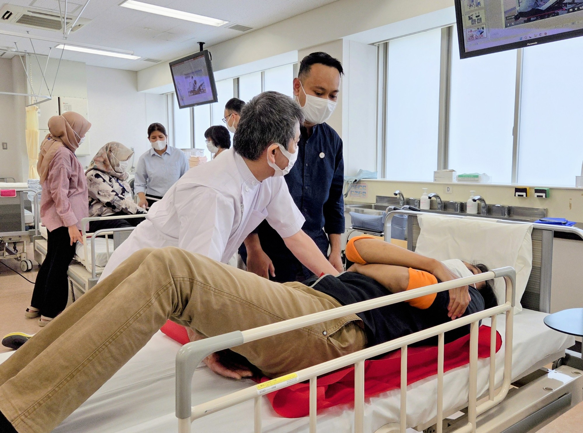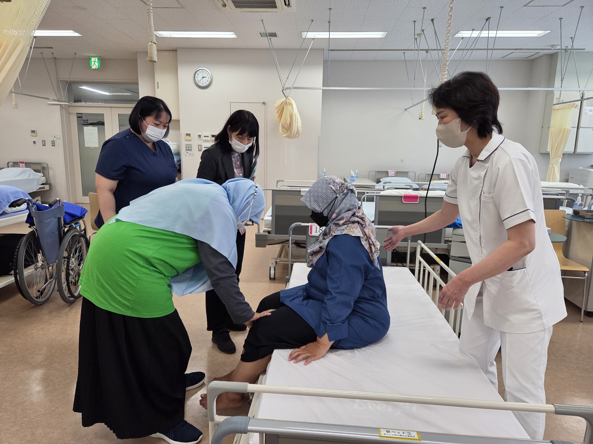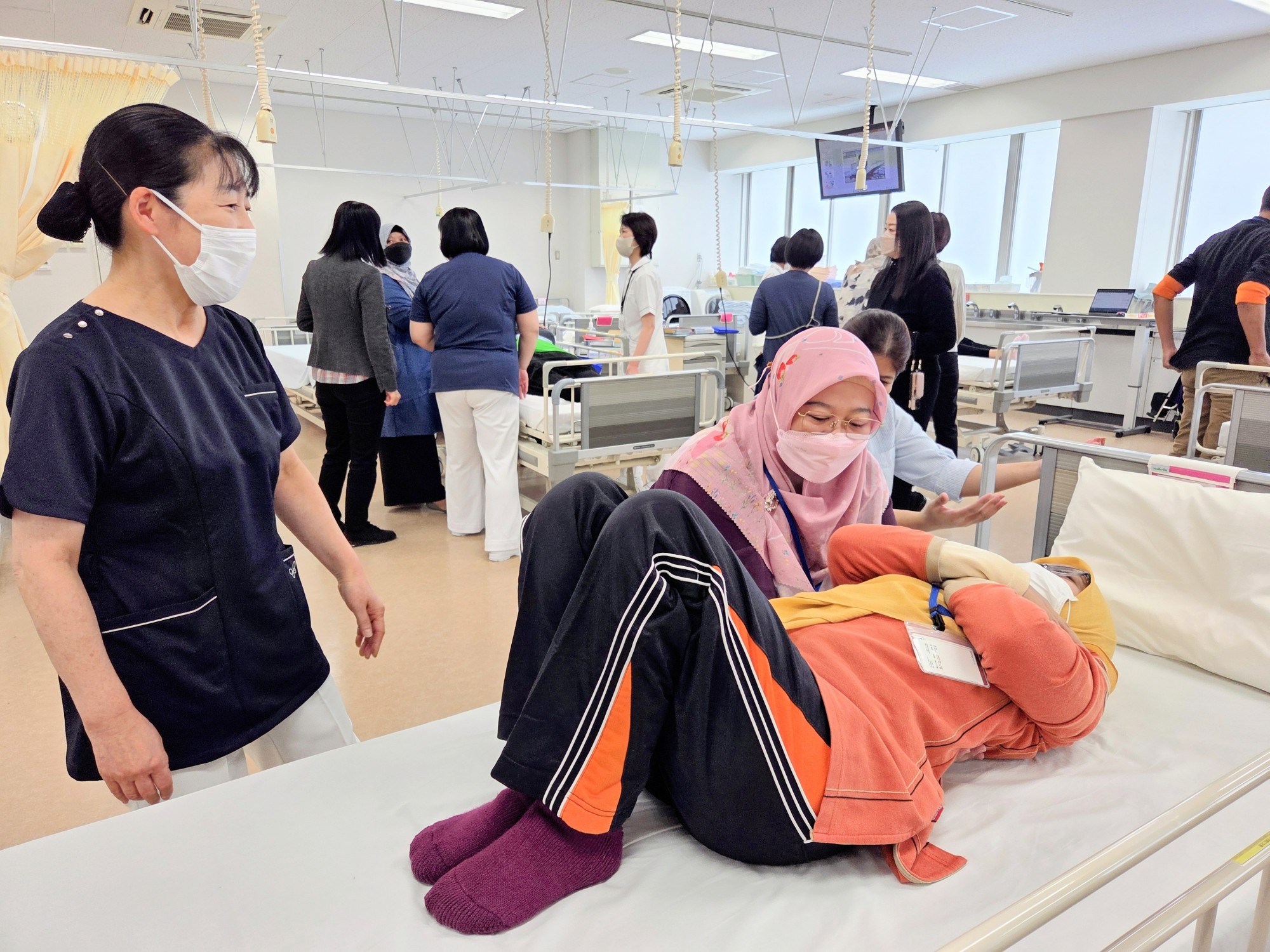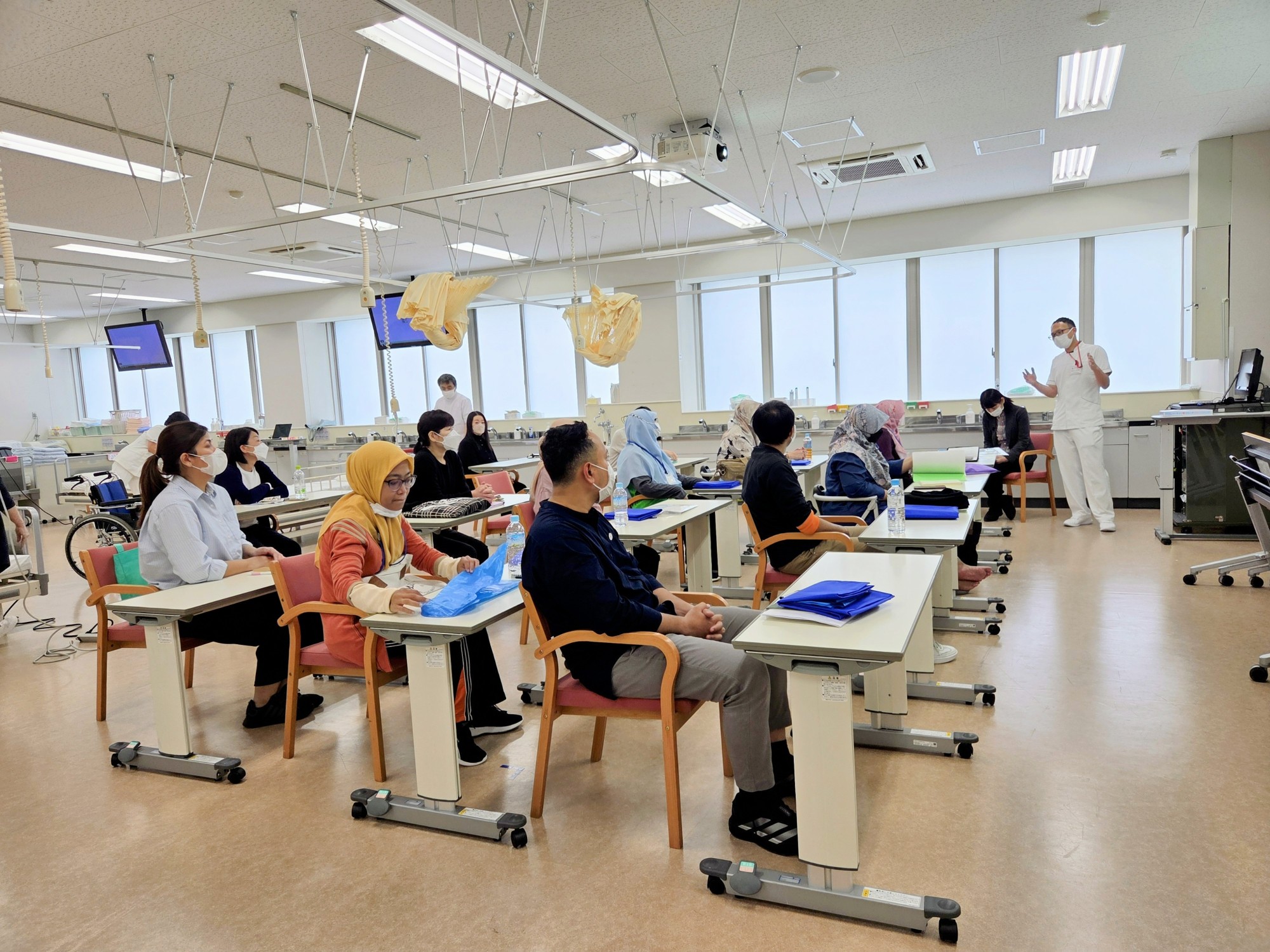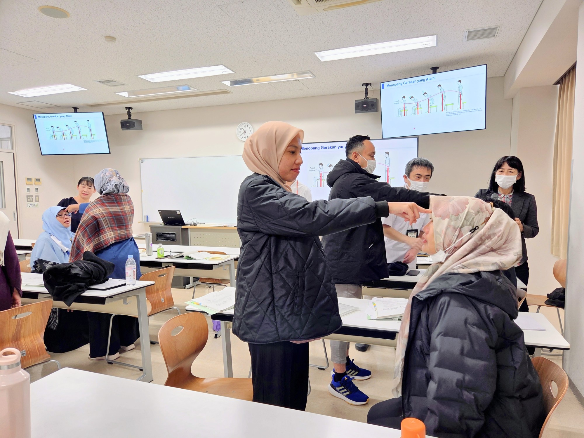 本学にて JICA インドネシア「介護人材能力強化プロジェクト」の一環として、インドネシアから看護教員9名をお迎えし、2日間の研修を実施しました。今回の研修は「日本の看護理解促進と看護技術向上」をテーマに、本学の教育内容や実践を直接体験していただく貴重な機会となりました。