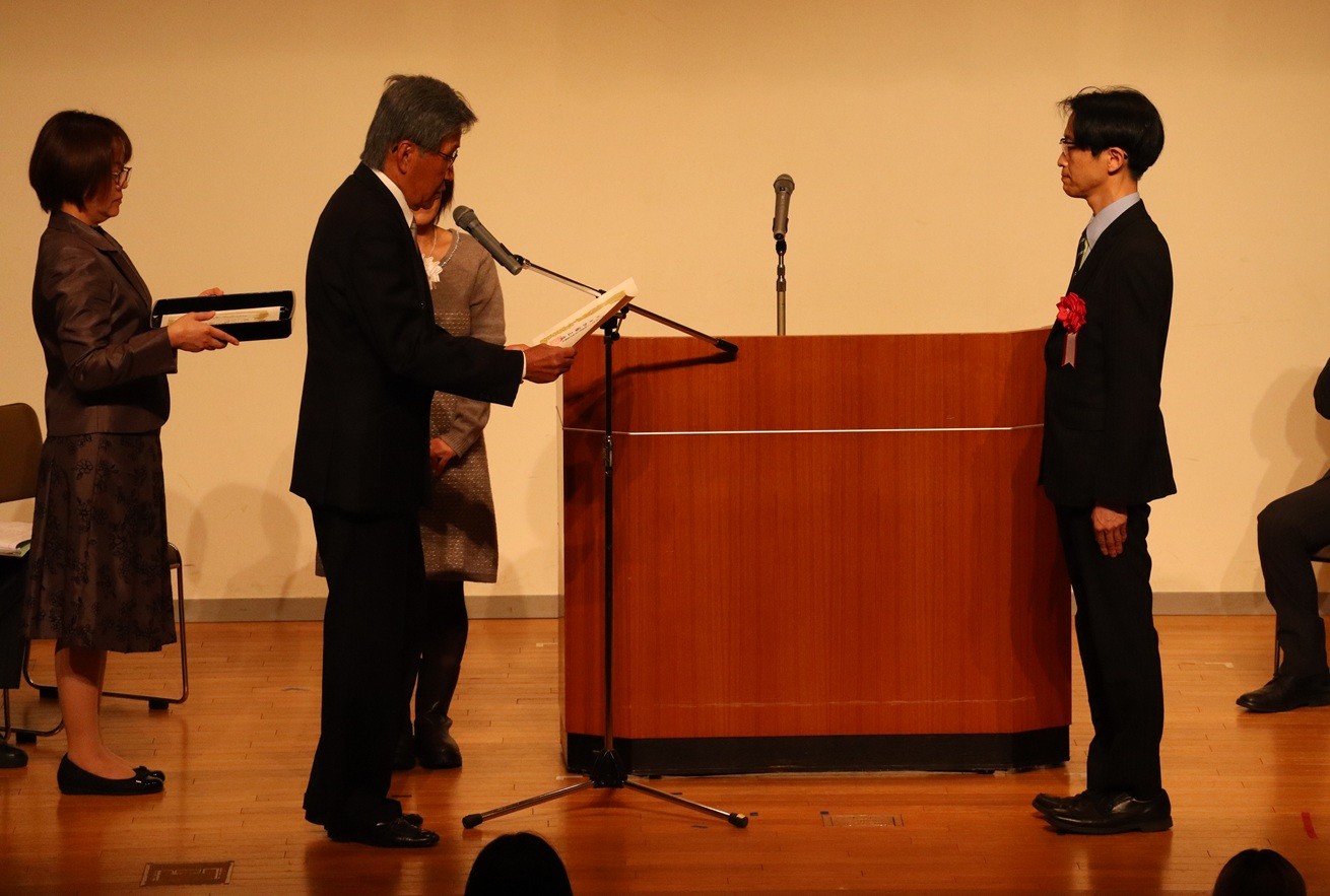 本学からは、キャリアプランニング科1年生の南金山桃花さんが豊橋市長賞を受賞し、豊橋市長から、表彰状を授与されました。また、本学では、地域の未来を創造する大学として、日頃から社会を明るくする活動に積極的に取り組んでいます。こうした本学の取り組みに対して、今回、大学としても、感謝状をいただくこととなりました。表彰式では、学長の代理として、豊橋創造大学短期大学部幼児教育・保育科の葛谷潔昭准教授が登壇し、感謝状を拝受いたしました。