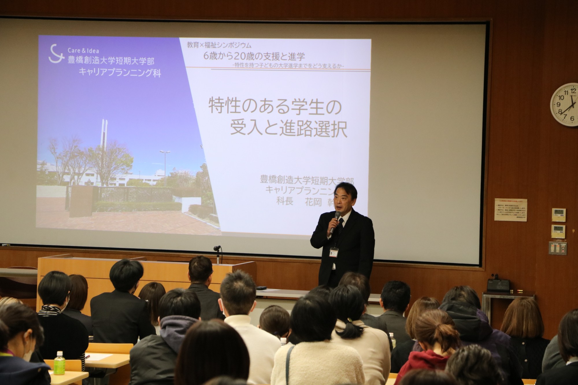 「地域の若者は地域で育てる。」本学は、地域の未来を創造する大学を目指しています。豊橋創造大学短期大学部は、こうした目標実現のため、去る2025年11月29日(土)、本学を会場に、教育×福祉シンポジウム「6歳から20歳の支援と進学 特性を持つ子どもたちの大学進学までをどう支えるか」(豊橋市教育委員会後援)を開催しました。地域初の教育×福祉シンポジウムで、教育、福祉、行政に関わる人たちや支援者など約170人が参加しました。
