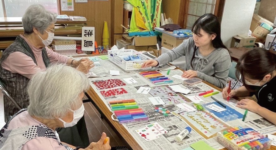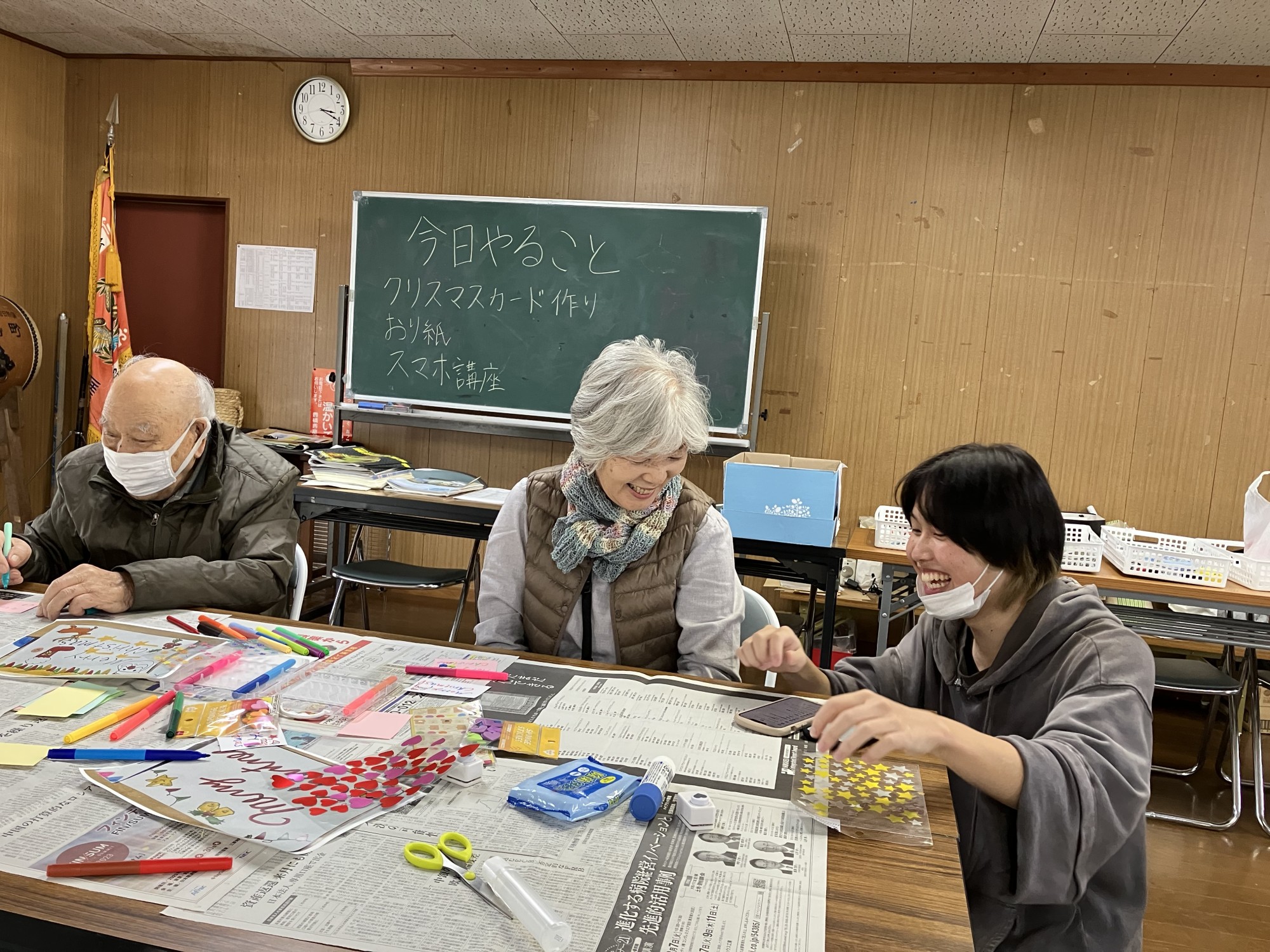 学生プロジェクトの活動として、高齢者サロンを利用する皆さんと一緒にクリスマスカードと折り紙を作成させていただきました。豊橋医療センターとこども食堂で行うイベントで配布するオリジナルクリスマスカードの作成です。サロン利用の皆さんと楽しく会話をしながら一緒に作り上げたクリスマスカードは、特別な一品に仕上がりました!