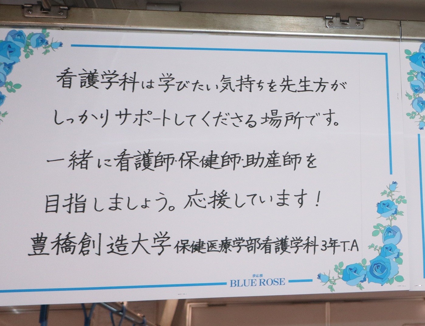 この度、本学は、本学の連携協力協定締結先である豊橋鉄道(株)が企画した「受験生応援企画の豊橋鉄道渥美線『夢応援・幸運のBLUE ROSE(ブルーローズ)号』の運行」について、その趣旨に賛同し、本学の各学部学科の学生たちから応援メッセージを集め投稿させていただきました。