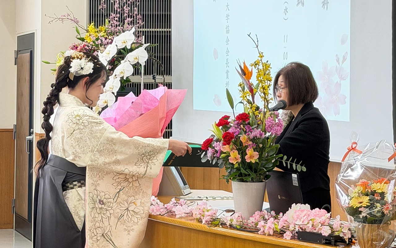 今年度は72名が卒業し、学位記授与では蒔田学科長から一人ひとりに学位記が手渡されました。看護師、助産師、保健師としての第一歩を踏み出す卒業生へ祝福の言葉が贈られ、保護者の皆さまの温かいまなざしに見守られながら、会場は晴れやかな笑顔にあふれる一日となりました。