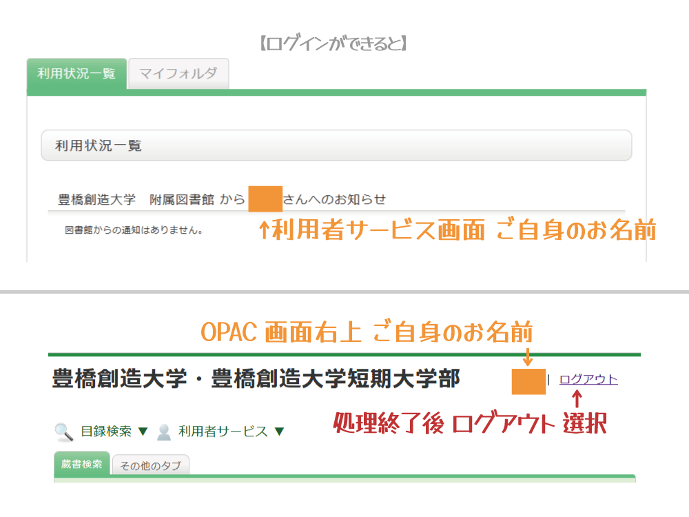 ★利用後はOPAC画面右上の[ログアウト]を選択してください。